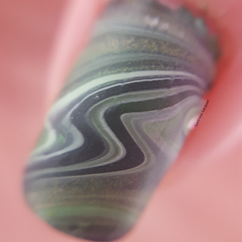 Easy right? Well, the one trick is choosing the right polishes. A nice mix of finishes and colors is key to getting a good marbled effect. I'd avoid polishes with larger glitters because they seem to be too heavy and the base is a bit thick but micro glitters seem to work well.